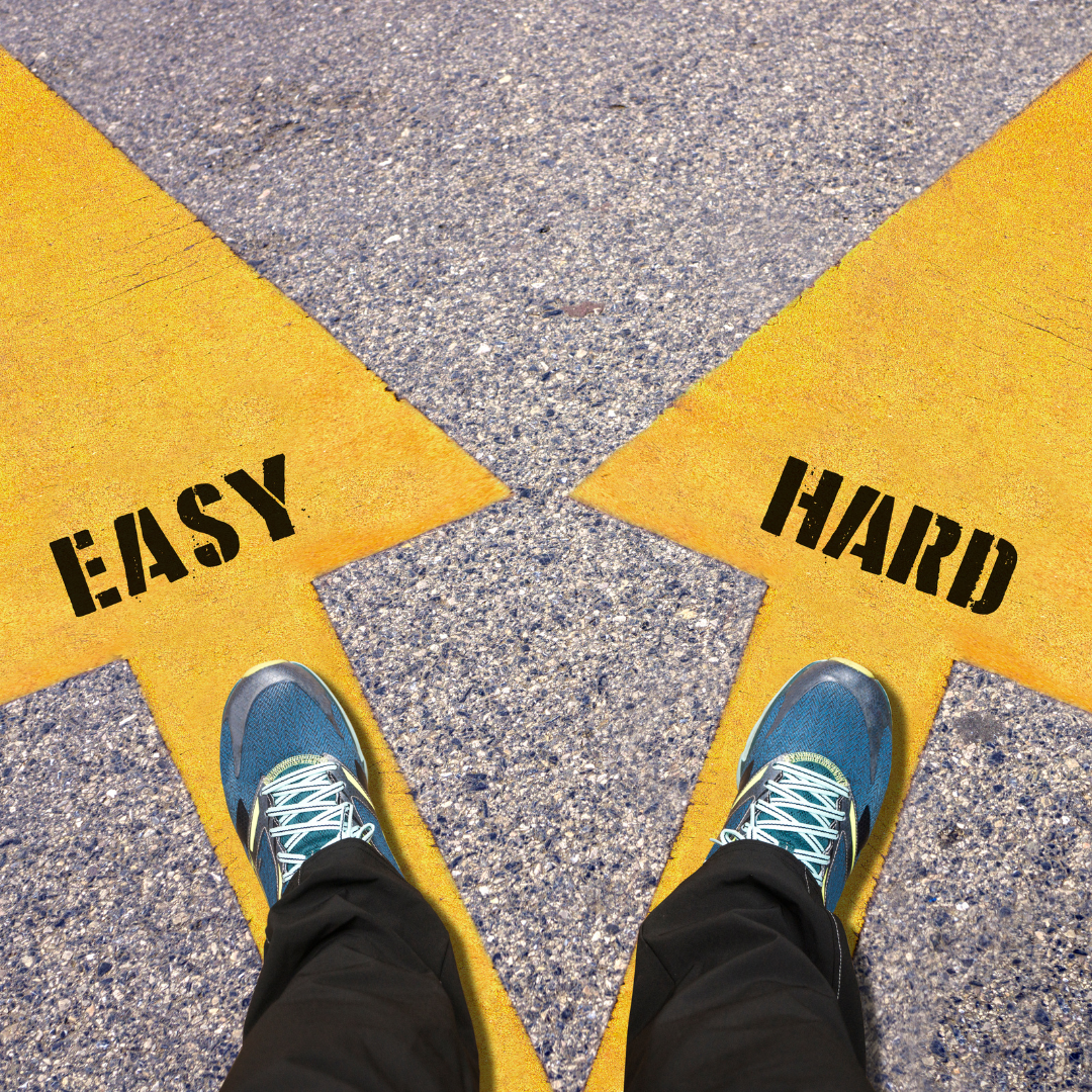Finally, identifying the gateway choices will help you reduce the friction involved in making the choice you truly want to make. This can be done by taking the end result of your goal (ie: running a marathon) and putting it at one end of a spectrum and noting it as very hard, then listing out the actions that are hard (running a ½ marathon), moderately hard (running a 10K), somewhat hard (running a 5K), somewhat easy (walking 10,000 steps), easy (walking for 10 minutes) and very easy (putting on your running shoes).